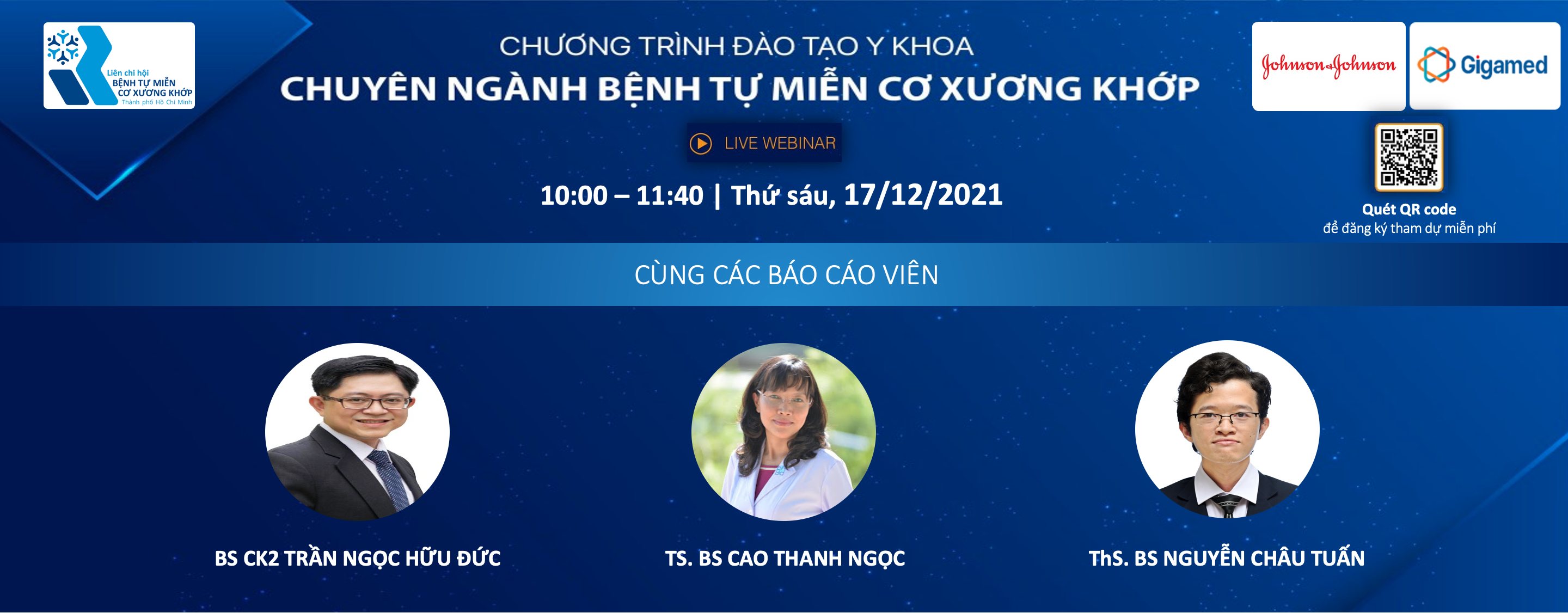 Liên chi hội Bệnh tự miễn cơ xương khớp TP. Hồ Chí Minh trân trọng kính mời Quý đồng nghiệp tham dự Hội thảo - đào tạo liên tục trực tuyến chuyên ngành bệnh tự miễn cơ xương khớp với các bài báo cáo hữu ích trong vấn đề lựa chọn thuốc sinh học trong điều trị bệnh lý viêm khớp cột sống, quản lý viêm khớp vảy nến trong...