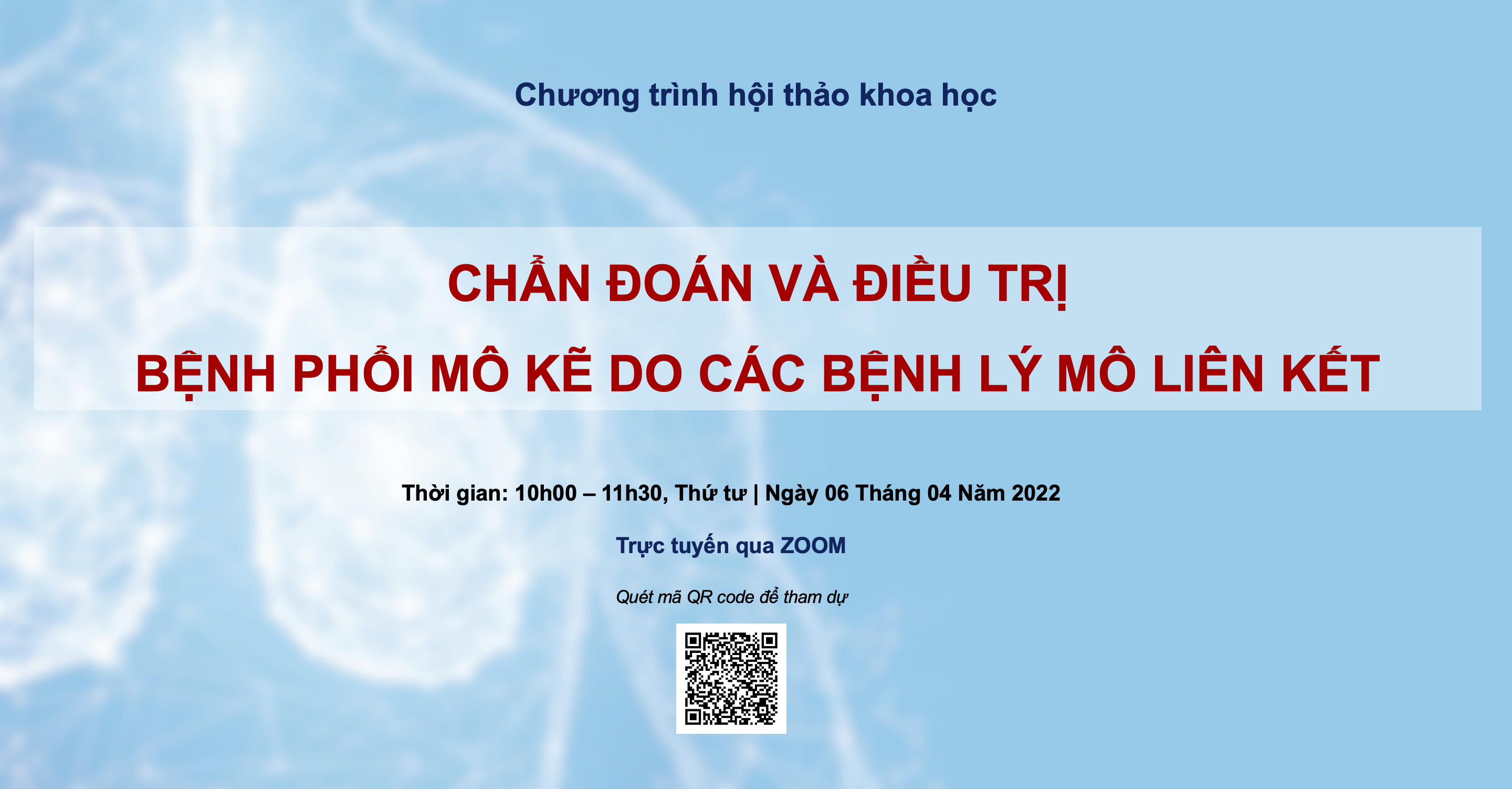 Nhằm cung cấp đến Quý đồng nghiệp các cập nhật mới nhất trong chẩn đoán, điều trị, các lưu ý khi đánh giá chức năng hô hấp và cách đọc phim HRCT trong bệnh phổi mô kẽ do các bệnh lý mô liên kết; đồng thời chia sẻ các kinh nghiệm trong quản lý nhóm bệnh này; LCH phối hợp cùng khoa Nội cơ xương khớp - Bệnh viện Đại...