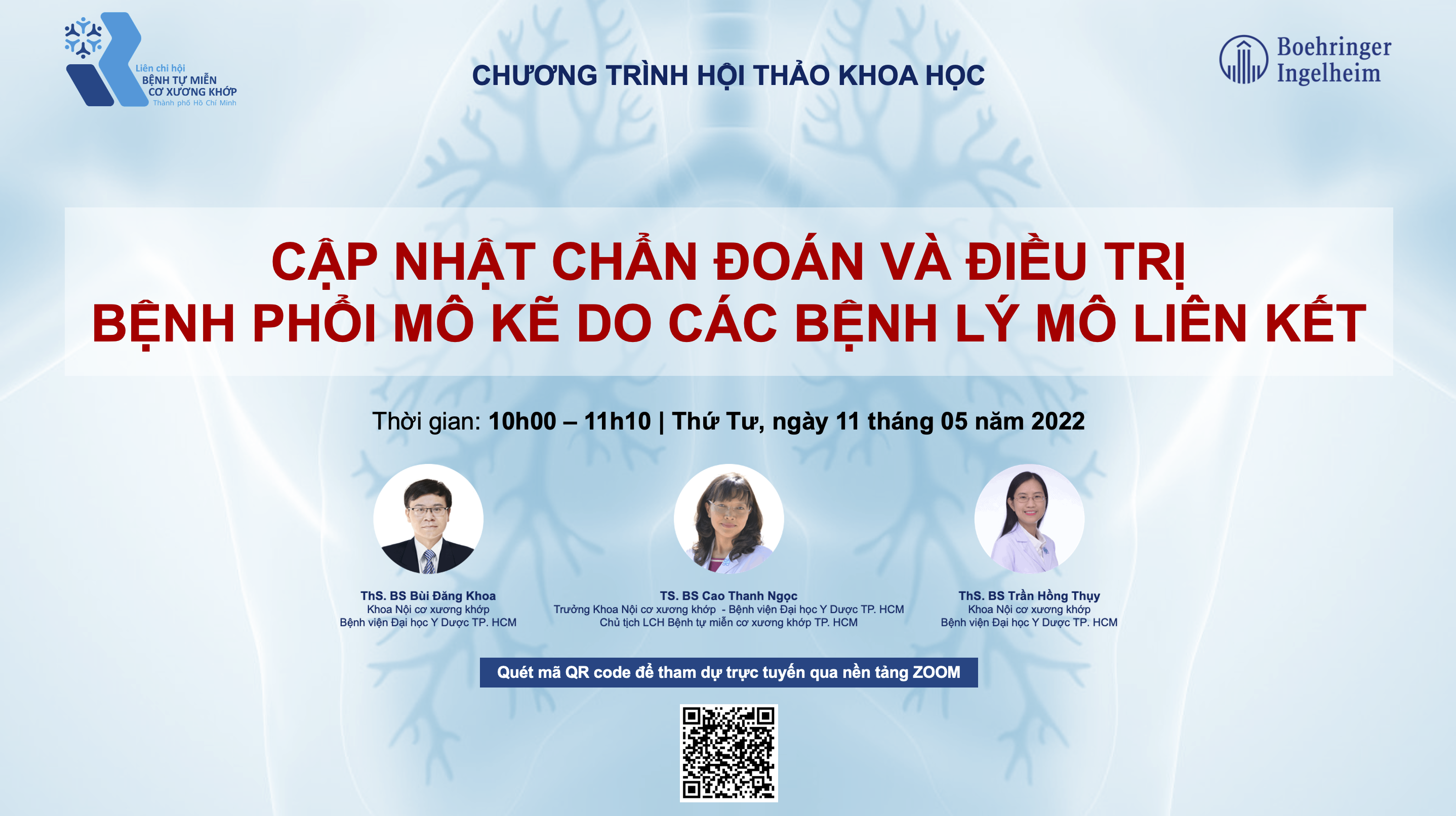 Nhằm cung cấp đến Quý đồng nghiệp các cập nhật mới nhất về chẩn đoán, điều trị bệnh phổi mô kẽ trong bệnh lý xơ cứng bì hệ thống và viêm khớp dạng thấp, Liên chi hội Bệnh tự miễn cơ xương khớp TP. Hồ Chí Minh tổ chức chương trình hội thảo khoa học với chủ đề: “CHẨN ĐOÁN VÀ ĐIỀU TRỊ BỆNH PHỔI MÔ KẼ DO CÁC BỆNH...