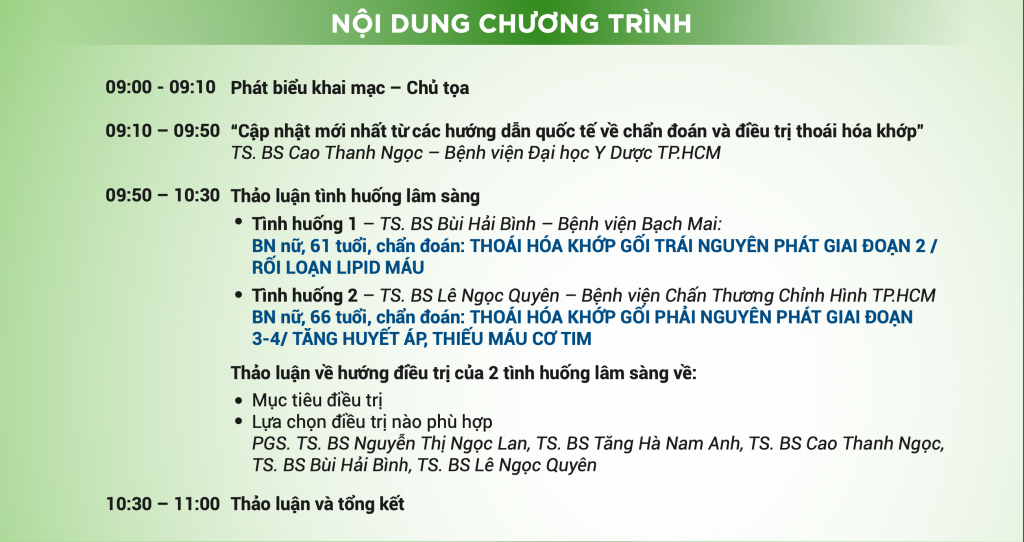 Để giải đáp các thắc mắc, Liên chi hội Bệnh tự miễn cơ xương khớp TP. Hồ Chí Minh tổ chức buổi Hội thảo đào tạo liên tục trực tuyến với chủ đề: “CẬP NHẬT CÁC PHỐI HỢP LỰA CHỌN ĐIỀU TRỊ THOÁI HOÁ KHỚP”